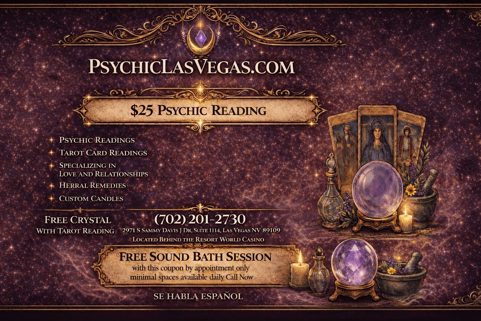 📍 Visit us at 2971 South Sammy Davis Jr. Drive, Las Vegas (next to Resorts World) and experience why so many call us the most trusted psychic advisors in Las Vegas.